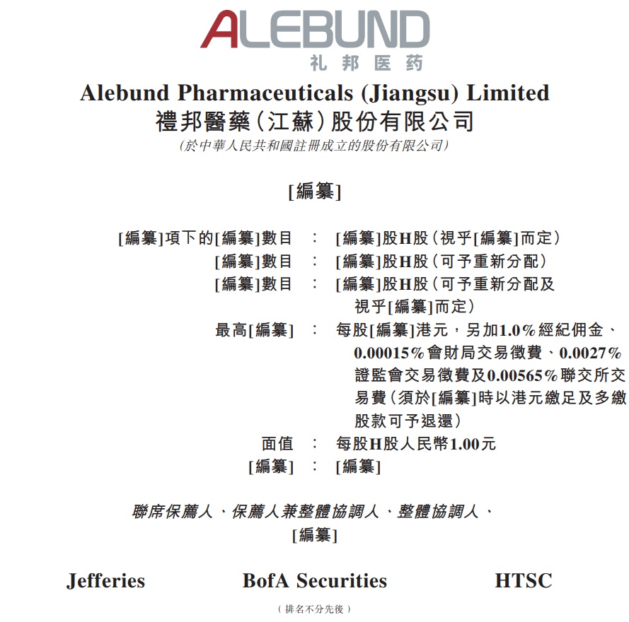 据港交所10月31日披露毅鸣天汇,礼邦医药(江苏)股份有限公司(简称:礼邦医药)向港交所主板提交上市申请书,Jefferies、BofA Securities、HTSC为联席保荐人。
